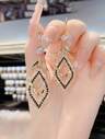 2 件立方氧化锆仿珍珠耳环,奢华流苏长耳环,女士适用