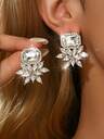 3件套女士首饰套装 - 时尚耳环和项链,几何水晶新娘爪链,派对和生日礼物