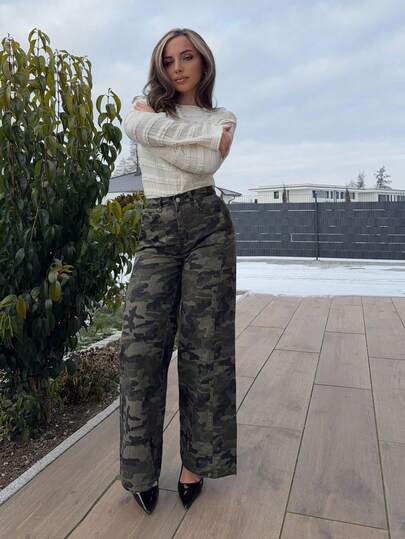 Jeta Ari 迷彩休闲直筒女式牛仔裤 - 藍色 - 查看 1