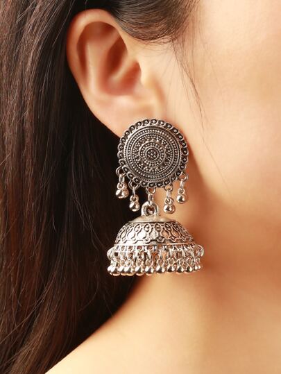 耳环 珠子 流苏 吊饰 耳坠 - 復古銀色 - 查看 1
