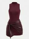 优雅女士长袖迷你连衣裙,针织面料搭配独特仿皮蝴蝶结设计,时尚穿搭。二合一造型女士连衣裙