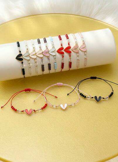 Joivida 手工编织心形手链,适合女士送礼。可购买单色。女士手链套装,时尚配饰,适合母亲节、父亲节、情人节和感恩节——可爱迷人的手链,适合自己佩戴,或作为礼物送给朋友、女朋友、情侣和母亲。 - 彩色 - 查看 10