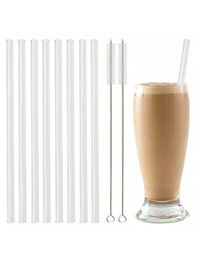 Jokipvy 2/4/8 件可重复使用玻璃吸管套装,带清洁刷,适合饮用果汁、珍珠奶茶,适合派对、婚礼、酒吧、海滩、厨房用具、派对用品、学校用品 - 彩色 - 查看 1