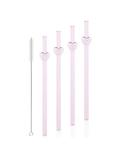 Jokipvy 4支心形玻璃吸管套装,含1个清洁刷,200*8mm高硼硅玻璃材质,经久耐用,适用于奶昔、珍珠奶茶、果汁、鸡尾酒等饮品,是厨房、派对、酒吧等场合的理想饮品配件。 - 彩色 - 查看 2