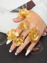 一套彩色锆石花朵开口戒指,金色可调节戒指,饰有多色宝石花朵细节,是女士时尚珠宝,非常适合日常搭配、派对造型和季节性时尚场合。