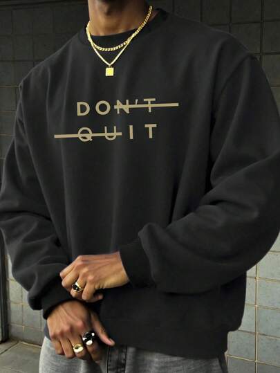K-GLORY 男士休闲百搭印花圆领卫衣 - 黑色 - 查看 1