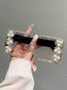 1 件女士矩形框时尚眼镜,无框设计,百搭装饰眼镜,适合夏季海滩度假、户外、旅行学院风,适合返校
