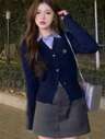 Merrilee 女士针织开衫,修身不对称荷叶边领短款毛衣内衣