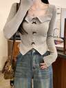 复古美式性感蝴蝶结领长袖 T 恤女式修身休闲 T 恤