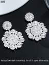 KMT 2件套铜镶嵌立方氧化锆双层花卉优雅奢华耳环,适合派对和宴会配饰