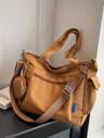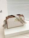 新款时尚日常百搭学院风菱格绗缝多口袋单肩托特包,纯色简约大容量斜挎包,学生书包,适合上班、通勤、购物和校园使用