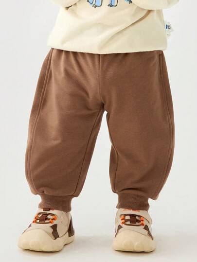mini bala 儿童弹力香蕉裤或刀片裤,男孩和女孩的可爱弹力春季长裤 - 咖啡 - 查看 1