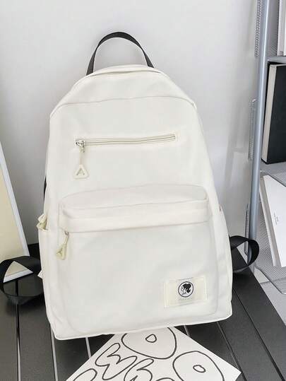 女孩人像貼布裝飾滌綸學院功能背包 - 白色 - 查看 6
