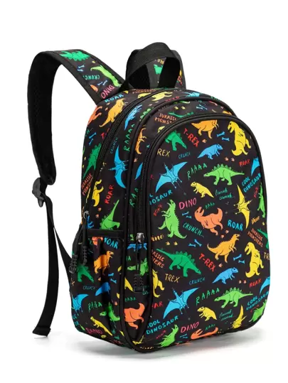 1 件男女通用可愛印花織物背包,帶襯墊背部和可調節肩帶,拉鍊開合。非常適合上學和旅行 - 黑色 - 查看 1