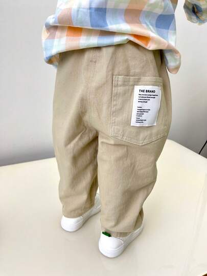 儿童休闲弹力腰裤,舒适休闲,适合玩耍、日常穿着、节日庆典和郊游,春秋季款 - 杏色 - 查看 7