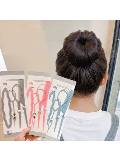 兒童塑膠頭髮環形&尖尾梳套裝適用於日常使用 - 淺粉色 - 查看 1