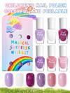 6支/套 4毫升 儿童趣味指甲油套装,涂鸦美甲水性凝胶底油和亮油多色组合,含亮片,黄色、紫色、绿色、粉色、马卡龙色亮片,适合儿童、各种季节、美甲沙龙、DIY、节日、派对、生日、礼物、美甲用品