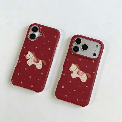 韩式中国新年红色格子卡通可爱星星图案小马简约手机壳,兼容 17 Pro Max、16 Pro Max、15 Pro、14、13,少女时尚手机保护套 - 紅色 - 查看 1