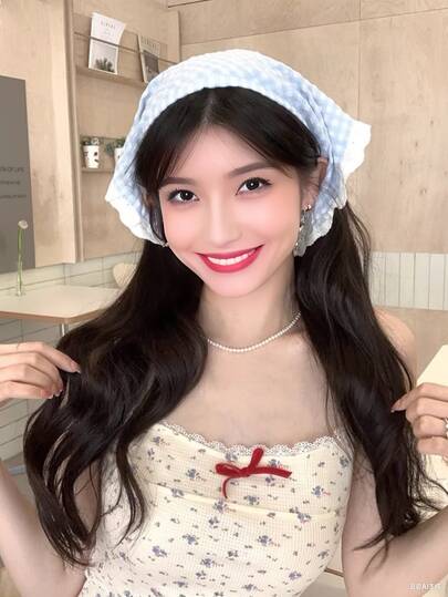 韩国女生最爱~夏季出游、海滩度假、乡村风的蓝色头巾,三角围巾头饰 - 彩色 - 查看 1