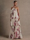 L'Amorae 褶裥 3D 花朵肩带系带细节长裙