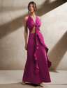 L'Amorae 优雅婚礼宾客伴娘派对纯色单肩高开叉荷叶边长裙