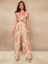 L'Amorae 优雅花卉网眼无袖不对称美人鱼下摆褶饰中长连衣裙,女士婚礼宾客礼服,女士夏季服装