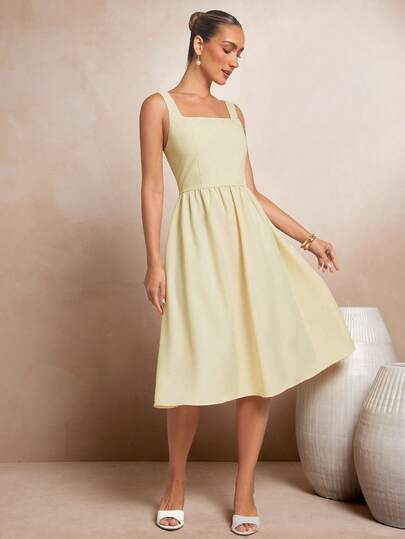 L'Amorae 女士方领德比复活节中长连衣裙,修身喇叭形 - 黃色 - 查看 1