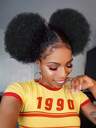 女士高清全蕾丝编织假发,带卷曲马尾辫,合成玉米辫编织假发,带蓬松发髻(自然黑)