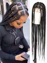 36 英寸大号无结盒编织假发,女士编织蕾丝假发,合成编织蕾丝前部假发,刺绣全双蕾丝编织假发,带婴儿发丝,长款黑色