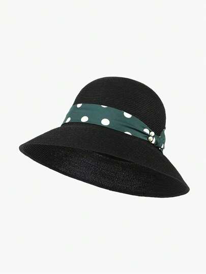 LEAJOURNO. 1顶优雅卷边宽檐波点遮阳帽,女士夏季防晒帽 - 黑色 - 查看 1
