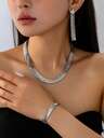 1 套 2 件合金欧美风格多层浮雕锁骨链项链配水晶吊坠,适合女性日常佩戴