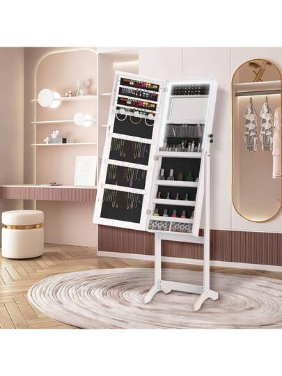 LILIIN 2-In-1 Jewelry Cabinet And Mirror Standing Mirror Cabinet Adjustable Jewelry Shelf 152 X 39.5 X 36.5 Cm Lockable Jewelry Storage Full-Length Mirror, White/Black - 白色 - 查看 5