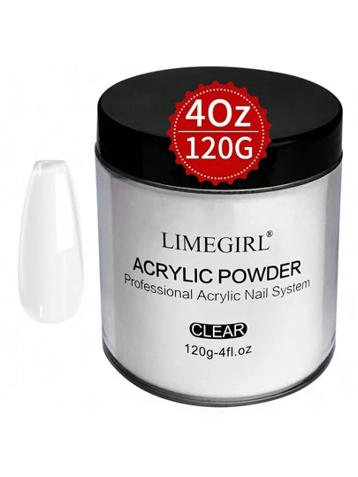 LIMEGIRL 120克/4盎司专业亚克力美甲粉,高硬度,透明粉色,适用于亚克力美甲、3D法式美甲、美甲延长、美甲雕刻、亚克力美甲压模 - 無色 - 查看 1