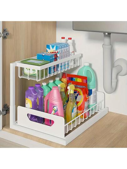 Stozle 2 Tier Under Sink Organizers And Storage, Under Sink Organizer, Slide Out Pull Out Cabinet Organizer Shelf, Metal Sliding Drawer For Kitchen Bathroom Pantry Cabinet Closet Organization Rack - 1pack白色 - 查看 1