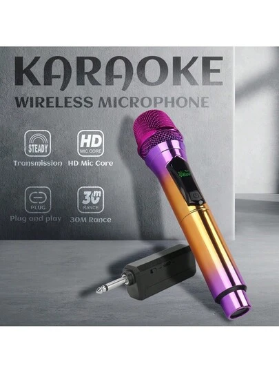 LMBGM W-4XC 无线可充电麦克风,适用于家庭、KTV、户外便携式唱歌表演,手持式麦克风系统 - 紫色 - 查看 10