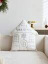 1件圣诞银色不对称房屋刺绣抱枕套,适合室内装饰,圣诞装饰抱枕套,不含枕芯