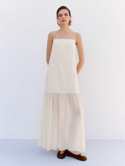 LYSMO 杏色女式荷叶边下摆细肩带长裙 - 杏色 - 查看 6