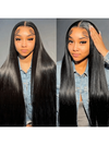 5*5 佩戴即戴,自然黑色长款假发(8-34英寸),真人前额发丝,13x4 高清蕾丝前假发,200% 密度,巴西原生预剪蕾丝真人前额发丝,直发假发,预先拔毛,带婴儿发,混合发丝,适合女性日常、派对、圣诞节等场合使用。