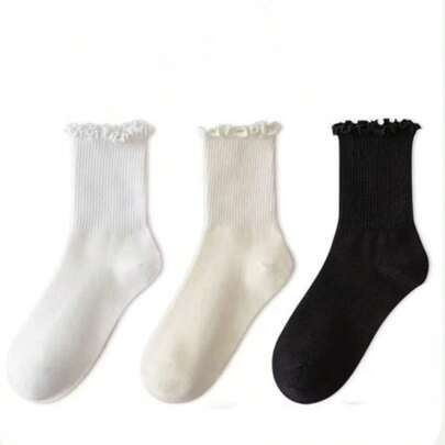 蕾丝女士薄款中筒袜,白色 JK 荷叶边耳朵,夏季百搭休闲袜 - 彩色 - 查看 1