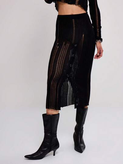 MUSERA 梯形针织中长裙晚宴派对优雅 - 黑色 - 查看 1