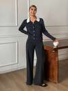 DAZY 三件套/组:波浪边饰蝴蝶结吊带背心、直筒裤和开襟上衣家居服套装,舒适休闲,秋冬服装