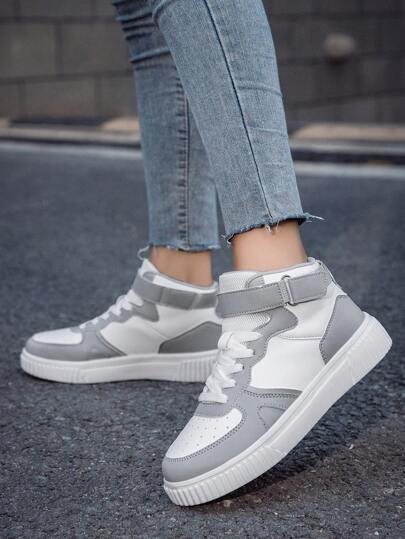 女士時尚多用途高幫運動鞋,透氣鞋帶設計,舒適透氣 - 灰色 - 查看 1