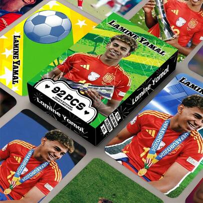 Lamin Yamal 足球卡,60 张卡片 + 32 张贴纸,收藏卡,精致收藏品,可收纳于证件照夹或交通卡套中,收藏品,生日礼物,圣诞礼物 - 彩色 - 查看 1