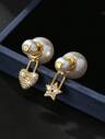 一对18K镀金铜立方氧化锆不对称心形和星形耳环,仿珍珠,优雅女士礼物,母亲节,圣诞节