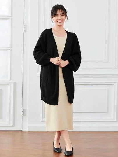 Chiquease 灯笼袖休闲设计开衫,长袖上衣 - 黑色 - 查看 1