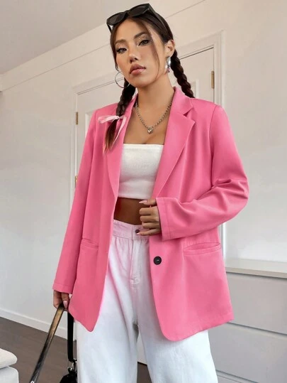 SHEIN Unity 西裝領單排釦西裝外套 - 粉色 - 查看 1