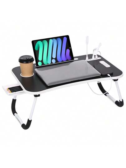 Laptop Bed Desk, Portable Foldable Laptop Table With USB Charging Port, Cup Holder & Storage Drawer, Lap Desk Tray For Bed, Sofa & Floor, Writing, Reading, Or Eating