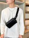 男士大容量纯色拉链腰包,时尚百搭胸包,单肩斜挎包,日常通勤休闲运动多功能手机零钱包