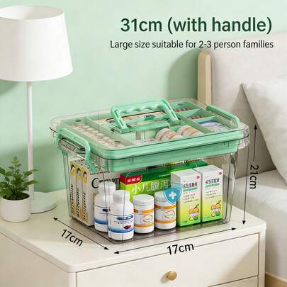 大容量便携式急救箱,多层家用医疗盒,透明带提手和隔层的应急药品收纳盒 - 彩色 - 查看 1