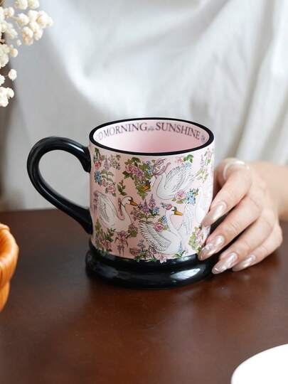 大容量复古天鹅风格陶瓷杯带手柄,适合家庭、餐厅、办公室、派对,可容纳咖啡、牛奶、拿铁、果汁、优质水杯等各种饮料,是送给朋友或家人的完美节日礼物 - 彩色 - 查看 1